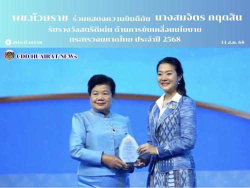 พช.ห้วยราช ร่วมแสดงความยินดี “นางสมจิตร กฤตสิน” รับรางวัลสตรีดีเด่น ด้านการขับเคลื่อนนโยบายกระทรวงมหาดไทย ประจำปี 2568