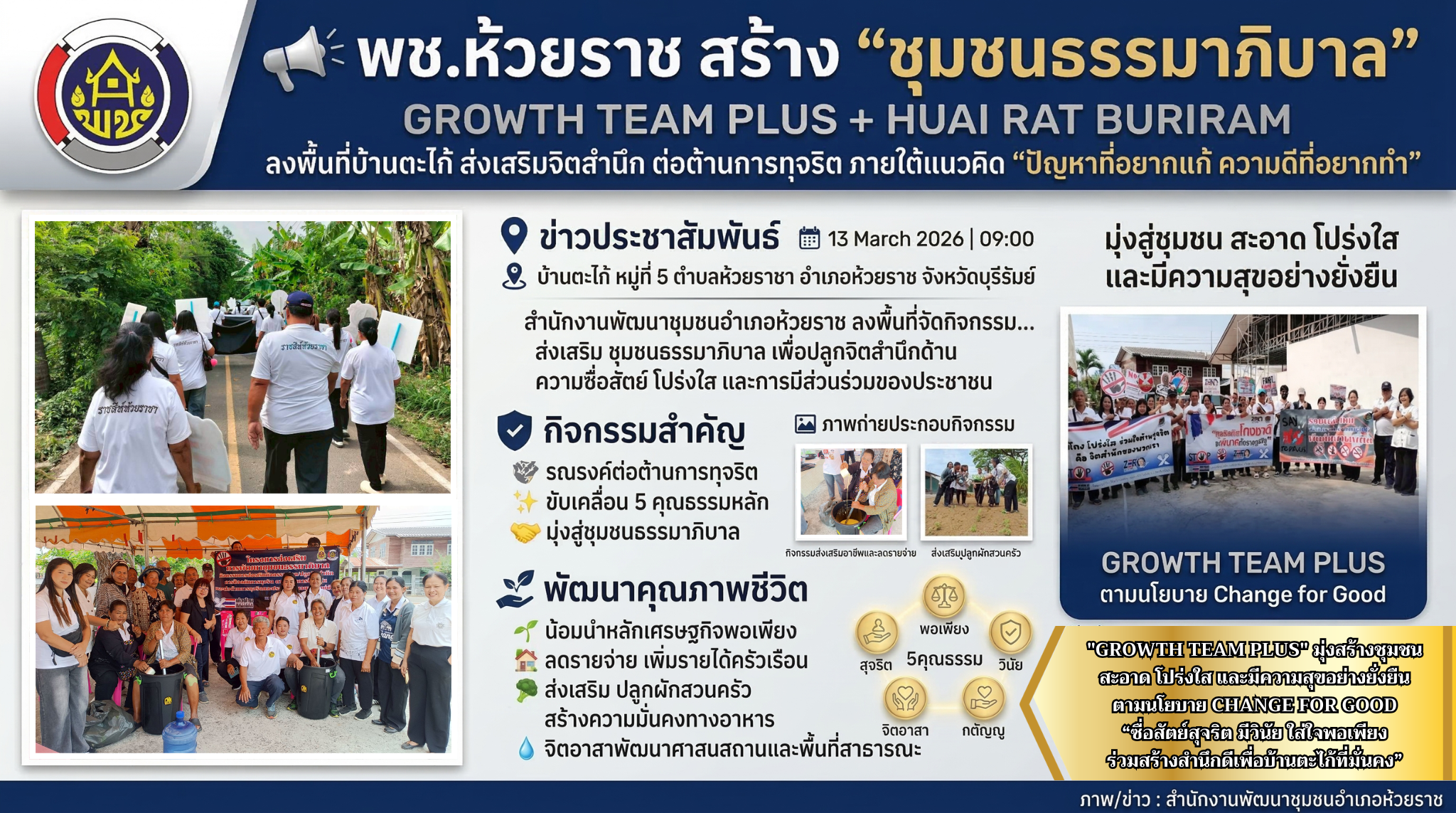 📢 ข่าวประชาสัมพันธ์: พช.ห้วยราช-CDD HUAI RAT: GROWTH TEAM PLUS+HUAI RAT BURIRAM